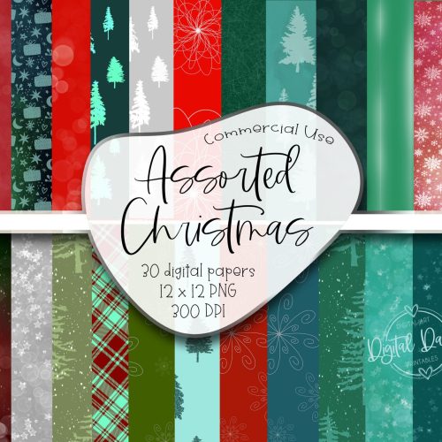Christmas Digital Paper – assorted patterns for instant download commercial use printable scrapbook paper