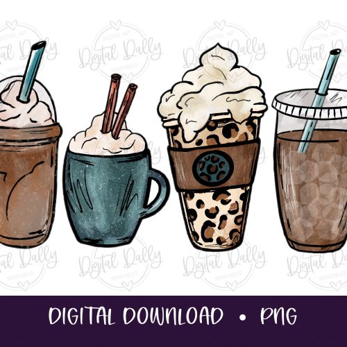 Coffee latte PNG, Iced Coffee, Cheetah Leopard Drink, Cozy Digital Coffee Sublimation Design, Hand Drawn Printable Graphic Clipart T-shirt