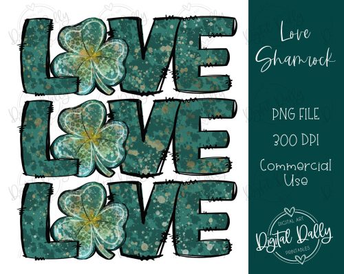 St. Patrick’s Day Love PNG, Grunge Shamrock, Retro Art, Green Leopard Print, Retro Png, Grunge Clover, Lucky Art, Sublimation Art