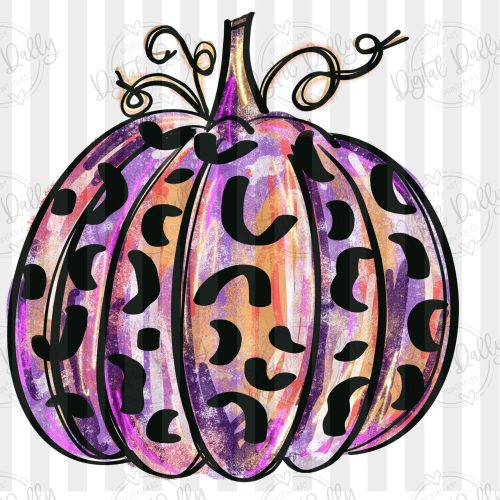 Pumpkin Clipart, Colorful Watercolor Pumpkin Graphic, Hand Drawn Thanksgiving Art, Sublimation PNG, Halloween Grunge, Cheetah Print Pumpkin
