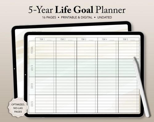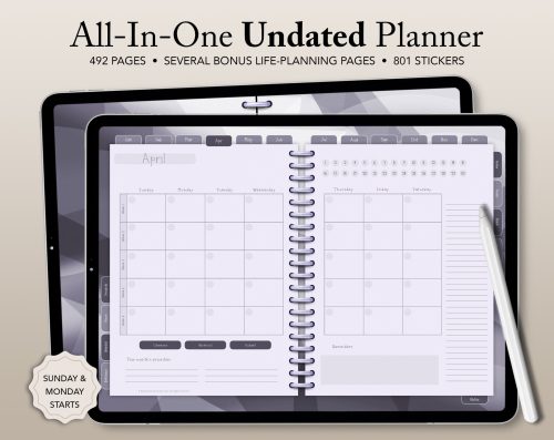 - Yearly, monthly, weekly & daily planning pages to include as much detail as you like