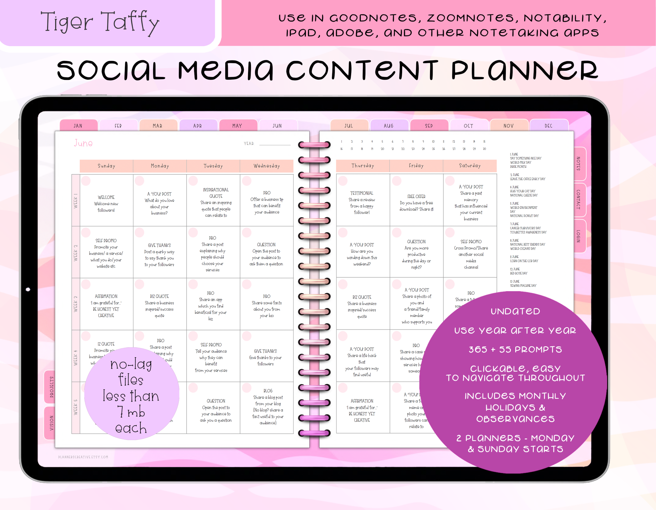 –> Check out our other Social Media Calendars here: https://www.etsy.com/shop/PlannersCreative?section_id=33258248