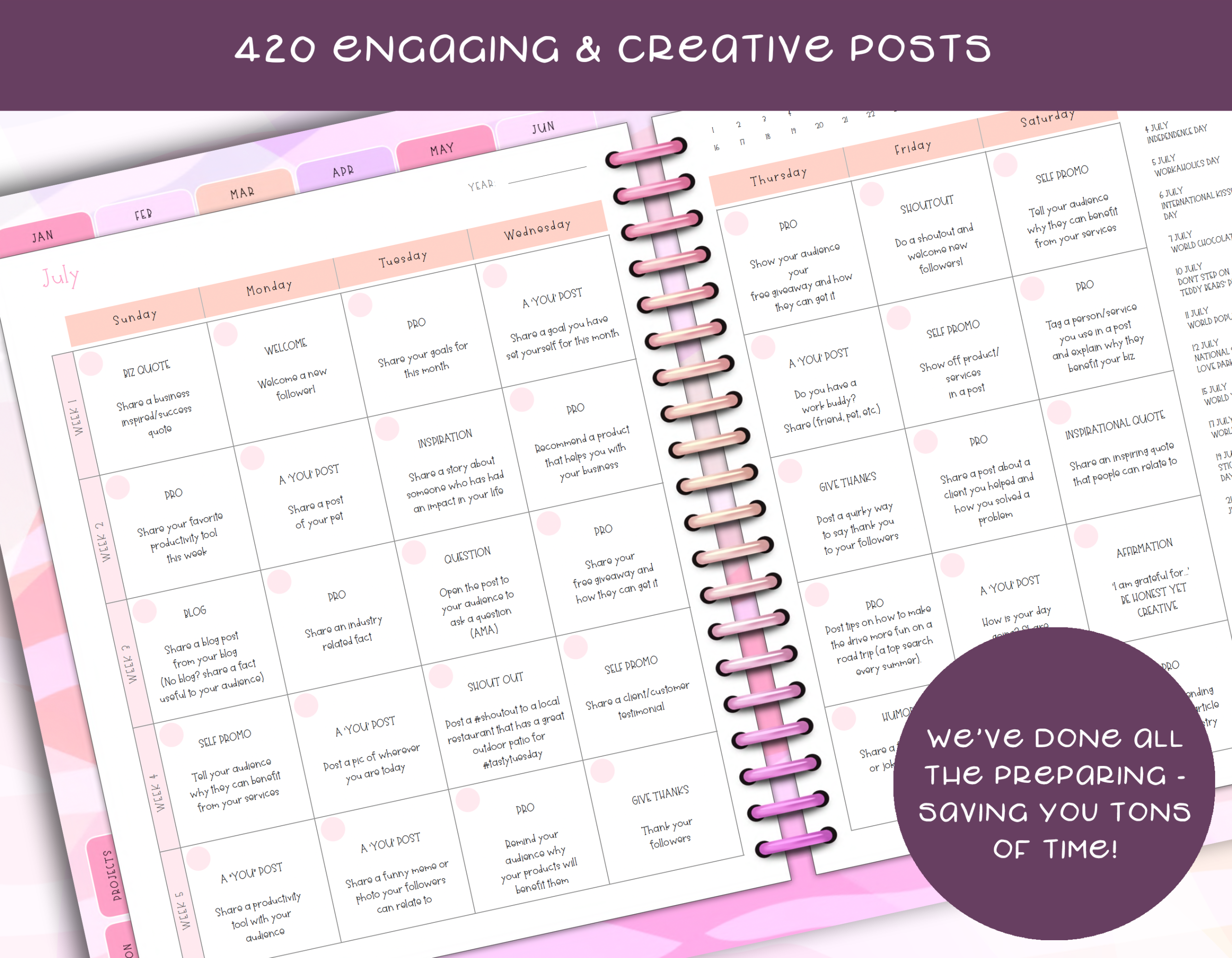 - 420 days of intuitive and engaging social media post topics
