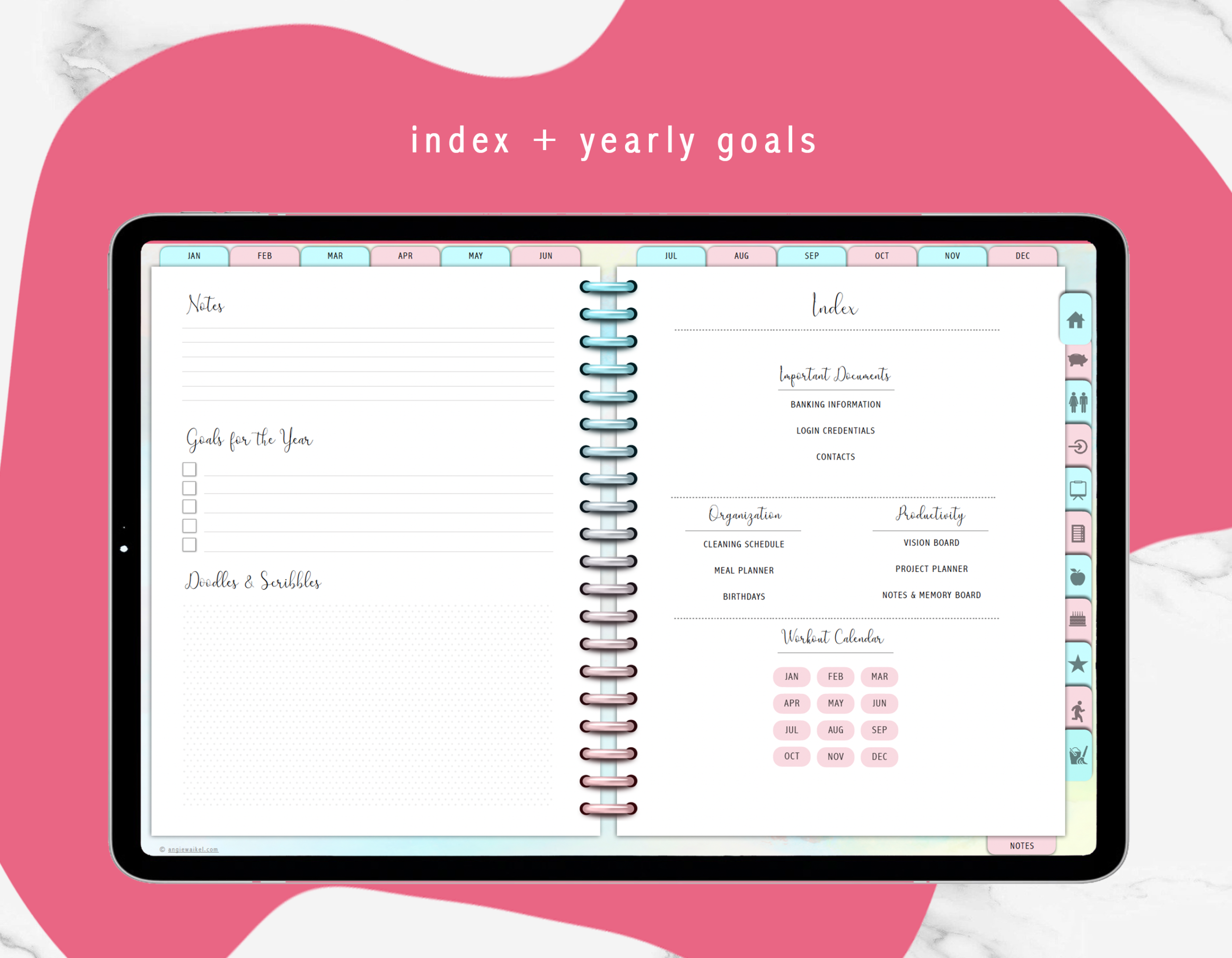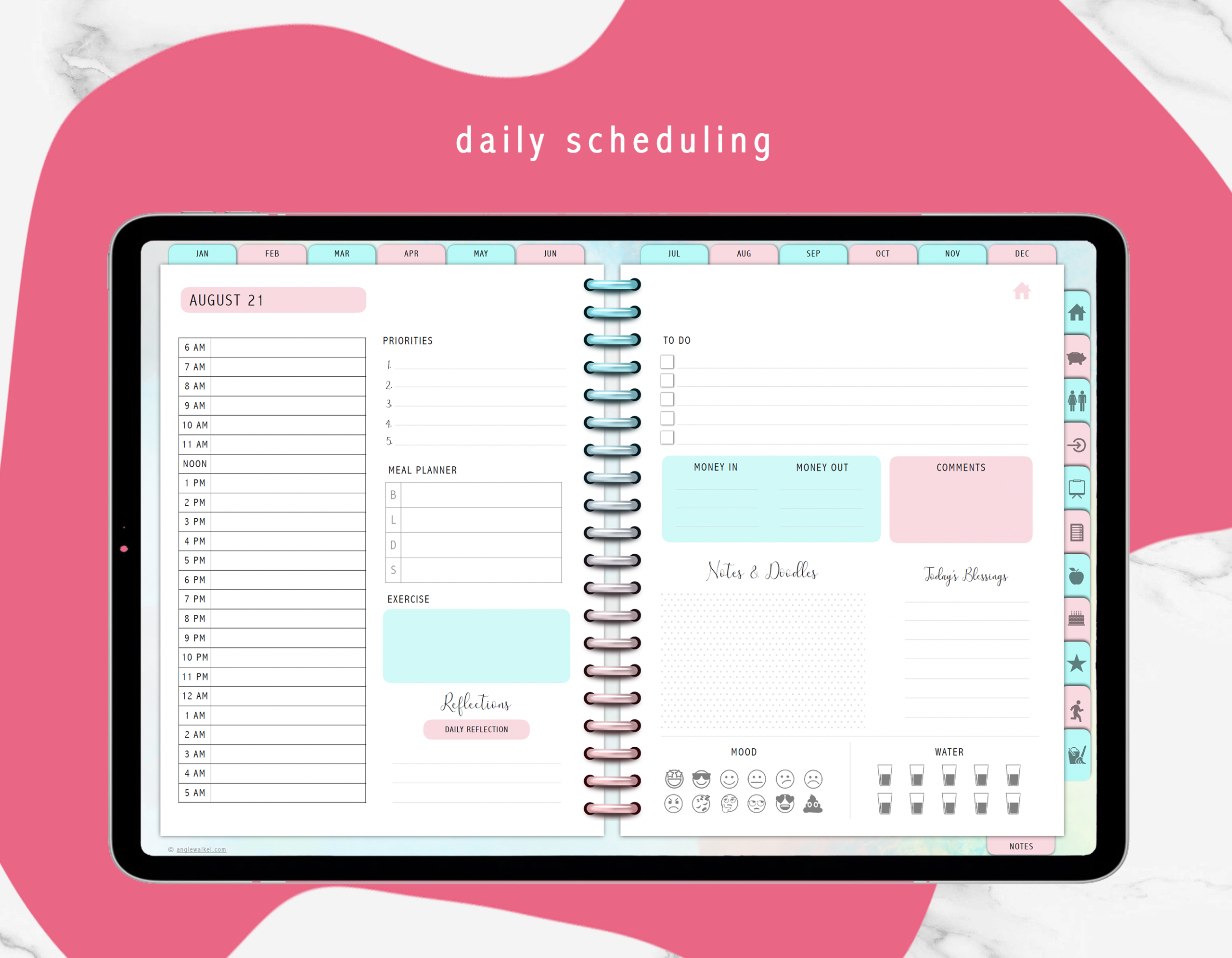 This digital planner has everything you need to plan your day! All of our planners are hyperlinked for easy navigation and organization. Whether you use GoodNotes, ZoomNotes, Notability or another note-taking app, you will find much value in our digital planners and stickers.