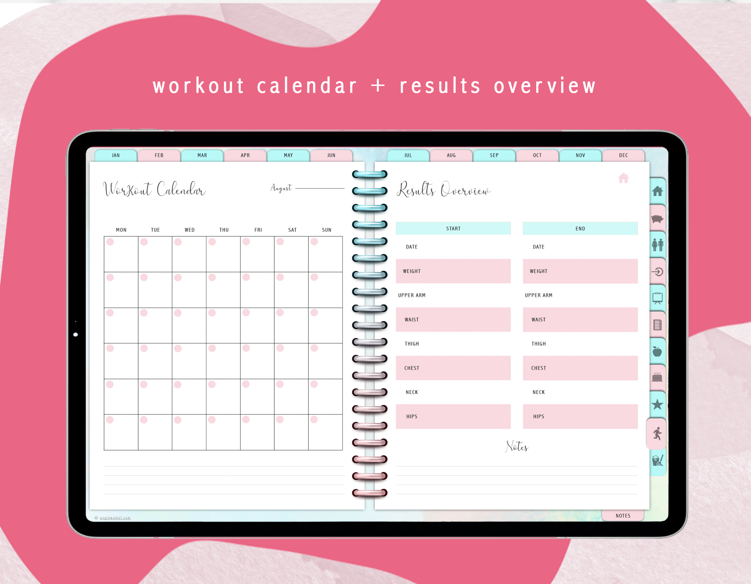 – WORKOUT CALENDAR linked to each month for tracking your fitness